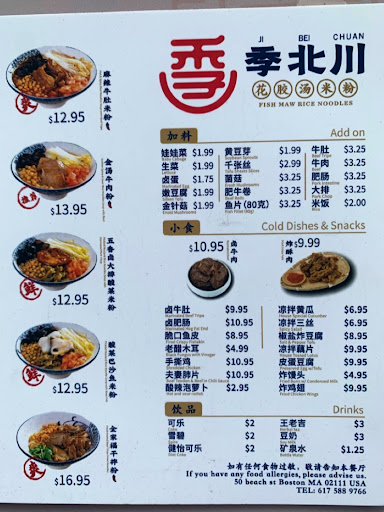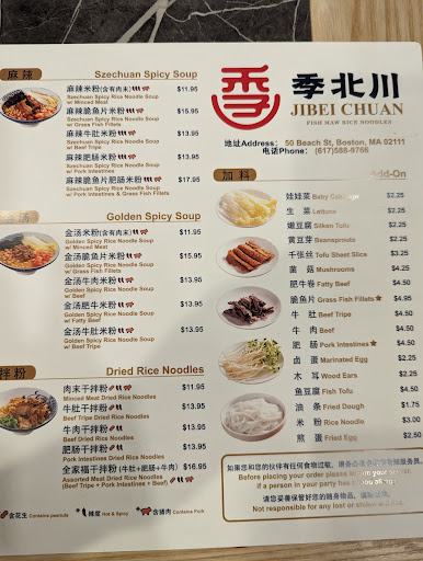 Jibei Chuan Menu